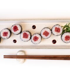 HOSOMAKI. Atún rojo, nori y arroz. ALÉRGENOS: Pescado / Gluten / Productos de soya (8 uds.)